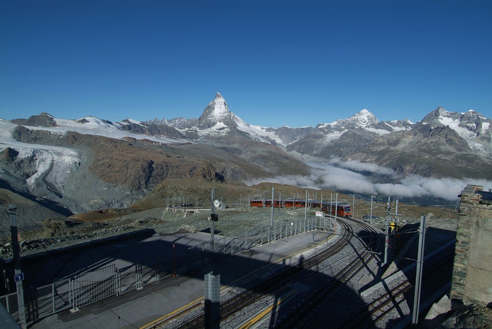 朝7時に朝食を済ませ、登山鉄道でゴルナーグラートに向かう。日本人だらけである。天気は快晴。一片の雲もない。道中、マターホルンの神々しい姿に感動しながら、無数の写真を撮った。駅を降りたら、山岳ホテルに向かって登っていった。