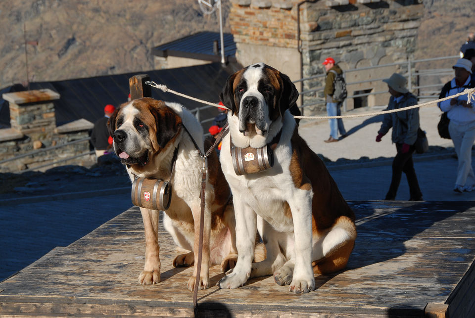 途中、セントバーナード犬が二匹ずつ2箇所で記念撮影サービスをしていた。一枚15スイスフランだとか。頼んでみることにした。一回はスイス国旗と日の丸を持っての撮影。2回目は国旗なし。国旗を持っての撮影ははハッキリいって不要だった。富士フイルムのカメラ店が行っているもので、ツェルマット駅前の店にて後で買うことができ、気に入らなければ買わなくても良いとのことであった。