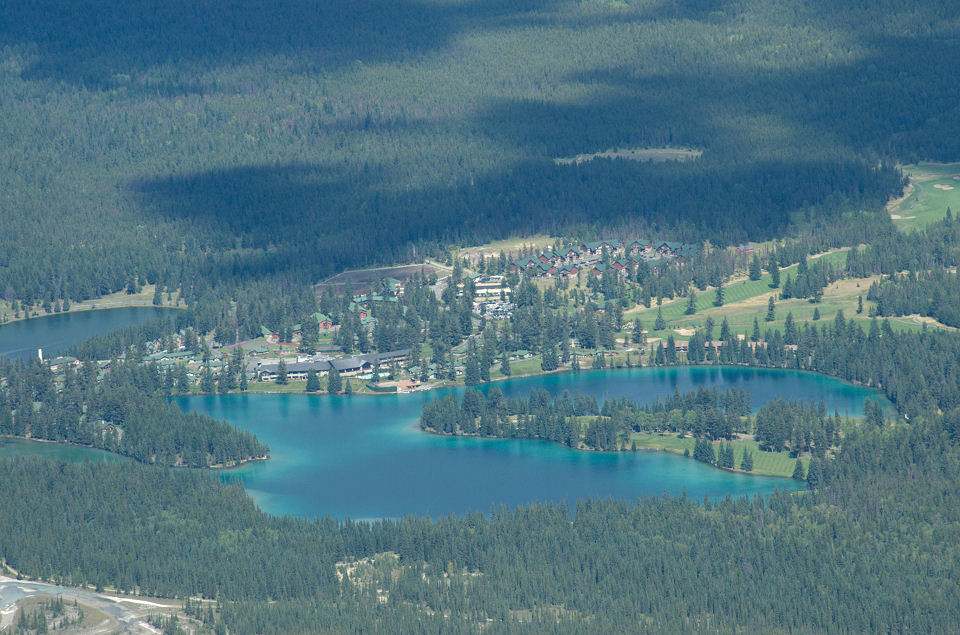 山頂駅に到達すると、思ったよりも雄大な景色が広がっていた。ジャスパーの街が見え、Jasper Park Lodge も見える、もちろんジャスパーのシンボルたるピラミッド山も正面に見える。見晴らしは素晴らしかった。
