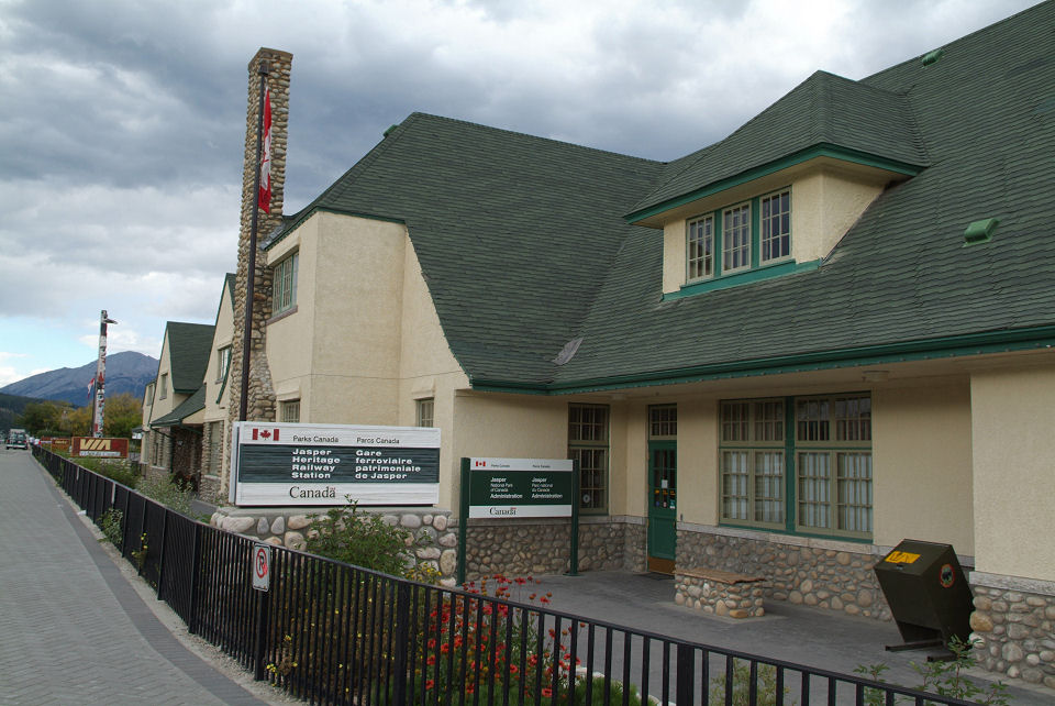 ジャスパー・トラムウェイの山頂駅から、ジャスパー駅に長い長い貨物列車が停車しているのを観た。どんな駅か期待して来た。ヨーロッパでも駅舎を訪れるだけでもノスタルジーを感じるものである。しかし、この駅の駅舎にはそんなものはなかった。ただ、駅舎右側に退役の蒸気機関車と、少し昔の VIA の特急列車があったのは私にとって興味深かった。