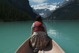 湖に向かって左奥にカヌーのレンタルがあった。カヌーといってもカヌーもどきで、船体は日本の貸しボート、オールはカヌーという代物である。このカヌーを1時間借りた。気持ちいい。1時間の制限時間で、十分に湖の奥まで行って帰ってきた。それも、揺れる揺れると怖がってほとんど漕がなかった家内の分、独りで漕いでの話である。日本の貸しボートに比して漕ぐのが容易である。進行方向を向いて漕げるのも景色を観るには有り難い。