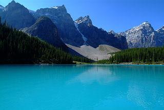 その後、再度モレイン湖の撮影をしてから、チェックアウト。荷物をレンタカーに載せてから、カヌーに乗る。チェックアウトしても、その明細を見せればボートは無料で乗れる。1時間ほどカヌーと景色を楽しんだ。昨日のレイクルイーズでは揺れる怖さで凍っていた家内も、カヌーを漕いでくれた。カヌーから撮影にもカヌーの方向をかえるなど協力してくれた。