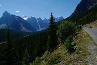 そうこうして、モレイン湖を楽しんでいると、12時半になっていた。予想外に長く滞在した。それだけモレイン湖が素晴らしいのであった。しかし・・・今日はジャスパーまで約280km移動する日である。しかも、途中にはコロンビア大氷原の観光ははずせない。時間が・・・。我に返ってジャスパーまでの移動を開始した。