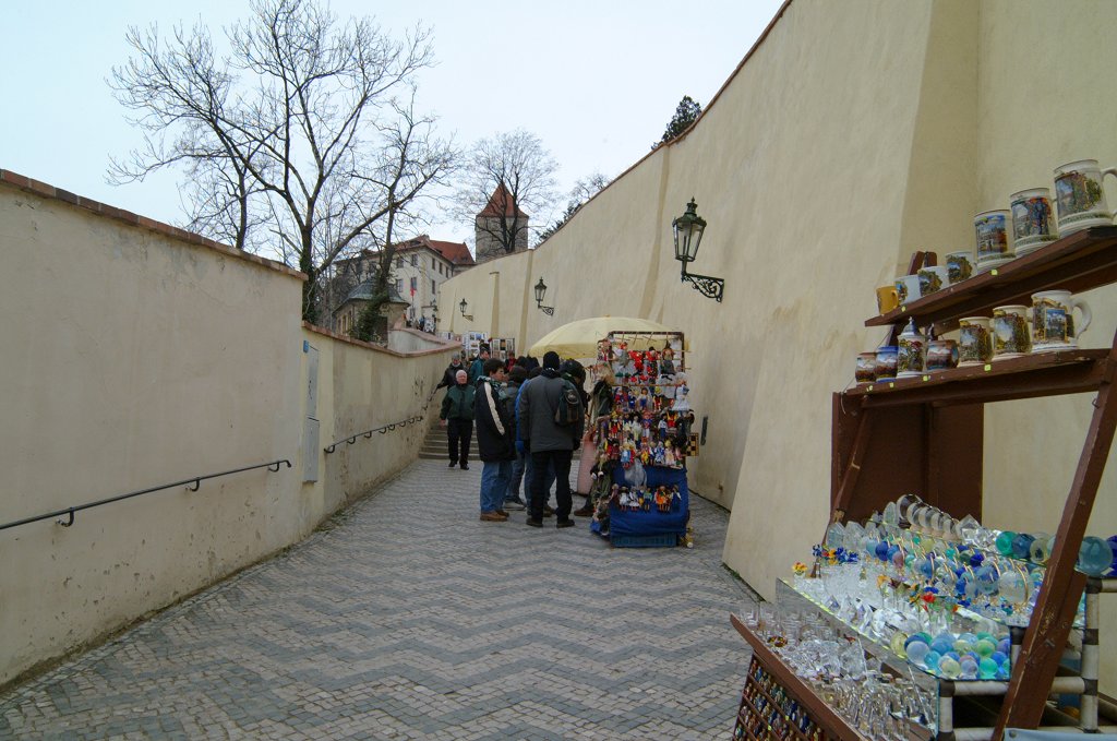 聖ヴィート大聖堂 黄金小路 黄金小路の狭い店内 黒塔付近からカレル橋方面の風景 左記よりも右側のアングル 旧登城道にはたくさんの土産物の露天がある