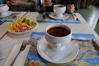 | 晴れていたら歩くのだが… | スープで身体を温めて | さらにアイリッシュ・コーヒーで寒さ対策 |