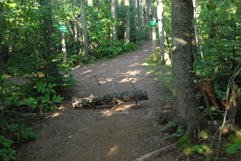 Please leave plants in the forest where both wildlife and others may benefit from their growing there.要約: 「お化けの森(The Haunted Wood)」は1.6kmで周回する森の小径である。モンゴメリーはこの森が、特に暗くなってから、神秘に満ちていることをイメージして、「赤毛のアン」に挿入した。ほぼ45分の道程である。平らな地道と木製の橋のトレイルであり、きつい坂には階段がある。ベンチなど休憩場所もある。森の環境を大切にして落書きなどしないように。