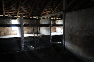 「死の門」こそアウシュビッツの象徴かも知れない。入り口近くには廃線の線路がそのまま残されている。「死の門」から入場する。だだっ広い。本当に広い。ここに10万人が収容されたとのこと。アウシュビッツの比ではない。
